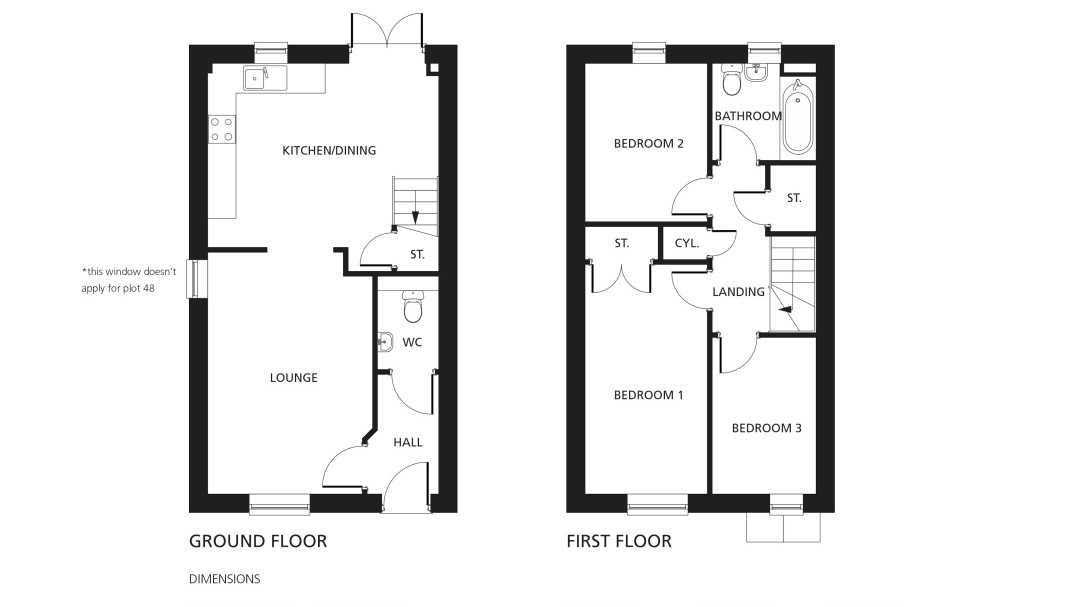 Three 3 bedroom terrace houses compromising hallway leading to downstairs wc and into living room onto a dining/kitchen area, family bathroom and three bedrooms.