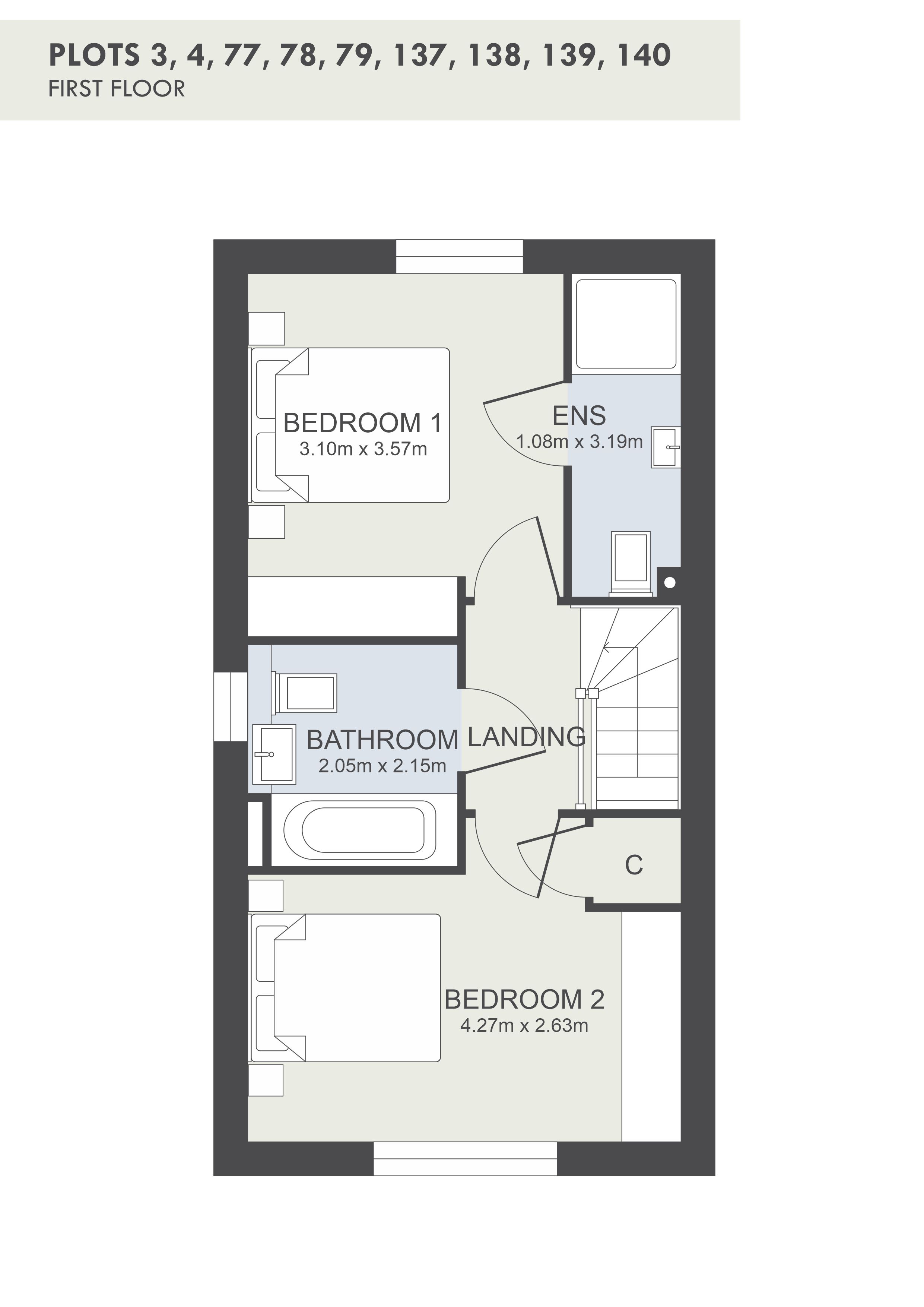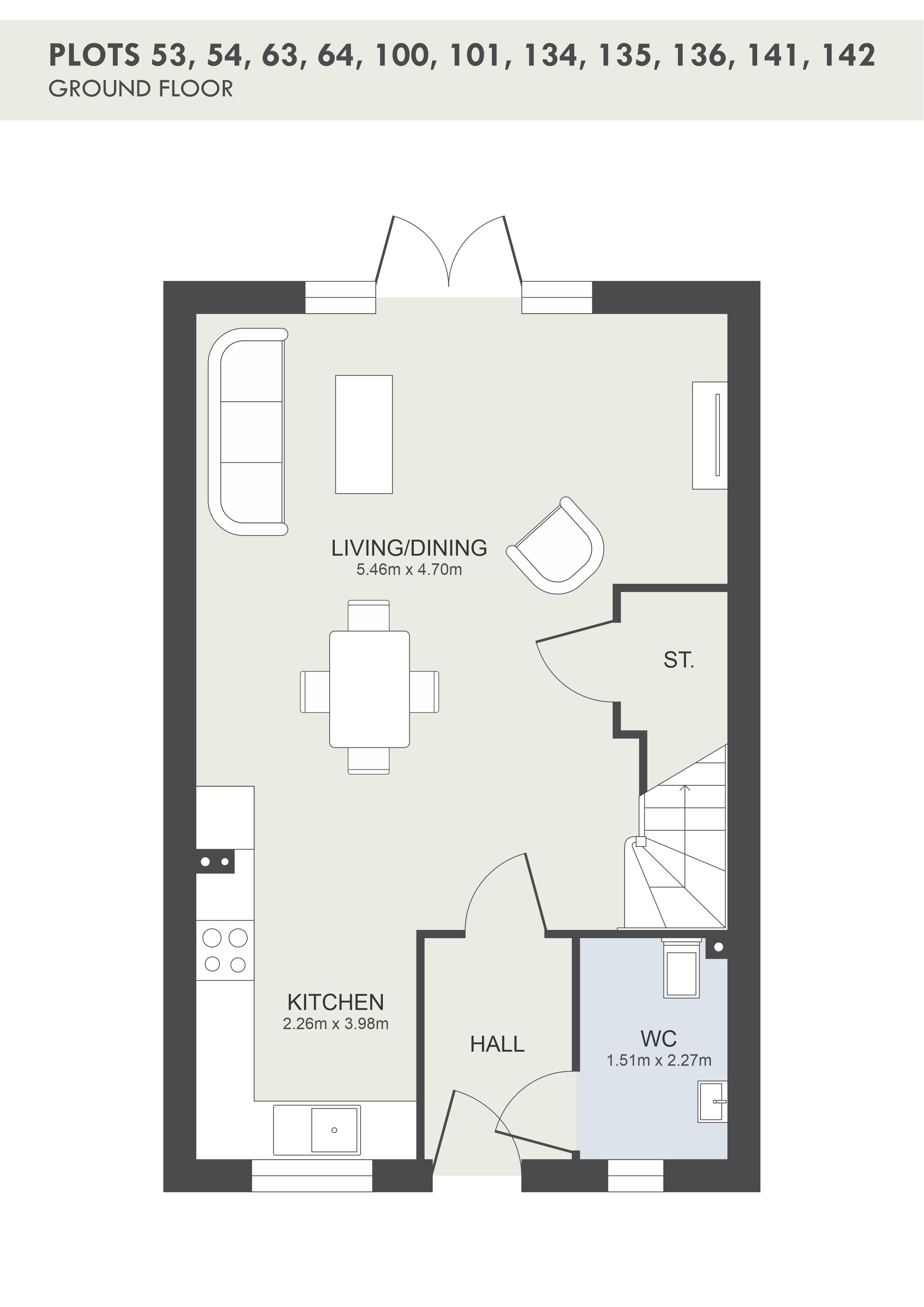 The Willow - 2 x two bedroom semi detached homes with approximate floor space of 71m2. Entrance area with ground floor cloakroom leading to large open plan living area with French doors leading to rear private garden. Stairs leading to two double bedrooms, ensuite to master bedroom, family bathroom with shower over bath.